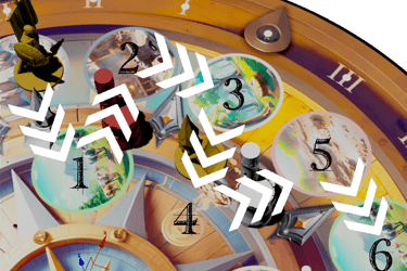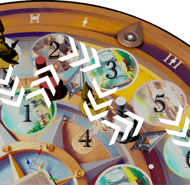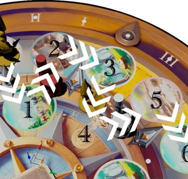 2- الحركة: ارمِ نردًا واحدًا وحرّك الـ Gealias حسب عقارب الساعة.